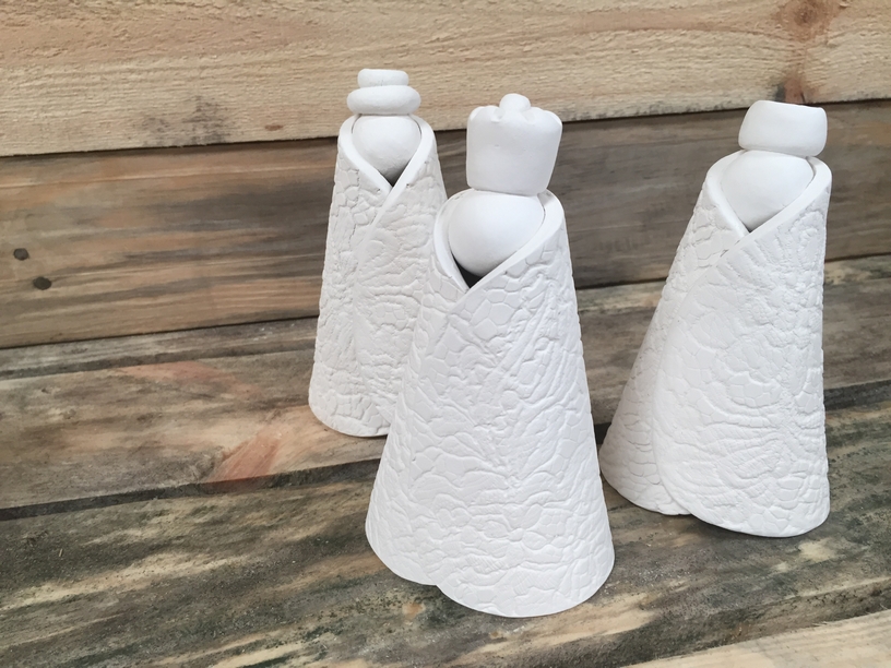 La combinación de telas, la costura a mano o máquina, la utilización de máquinas de transfer, chapas o troquelados, el planchado o rellenado … es el trabajo diario dentro del taller de artesanía.