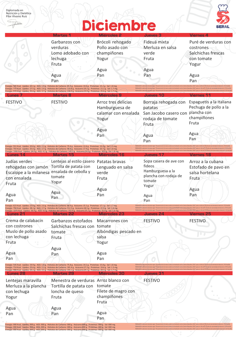 Comenzamos el año con este menú para dietas NORMAL y este para RÉGIMEN