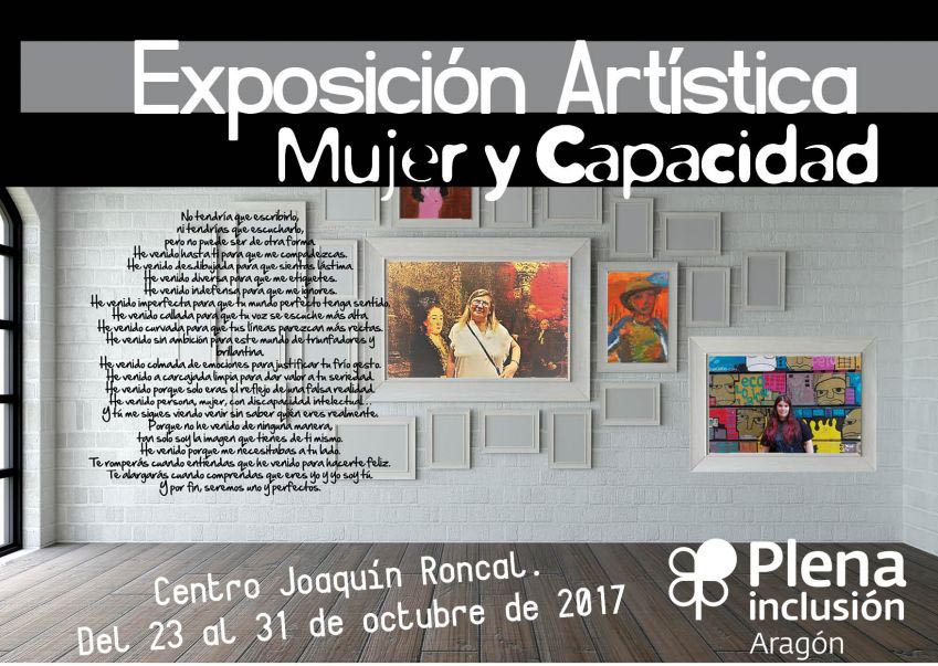Plena inclusión Aragón inauguró el lunes 23 de octubre su exposición “Mujer y Capacidad” en el Centro Joaquín Roncal de Zaragoza. Muestra que ha recopilado más de 70 obras artísticas de distintas disciplinas (pintura, fotografía, cerámica, dibujo, poesía, relatos cortos…), con las que se pretendía dar visibilidad a las capacidades, habilidades y al potencial de las mujeres en