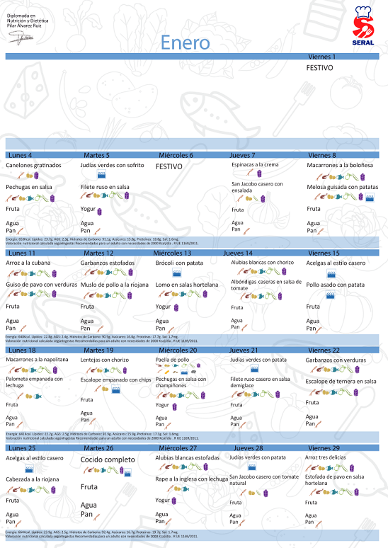 Comenzamos el año con este menú para dietas NORMAL y este para RÉGIMEN