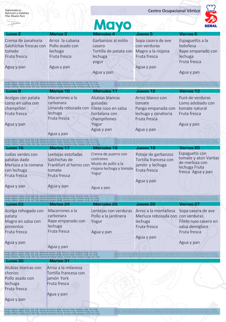 Y ya ha llegado el mes de Marzo, y con él la actualización del menú para este mes. MENÚ NORMAL MENÚ RÉGIMEN