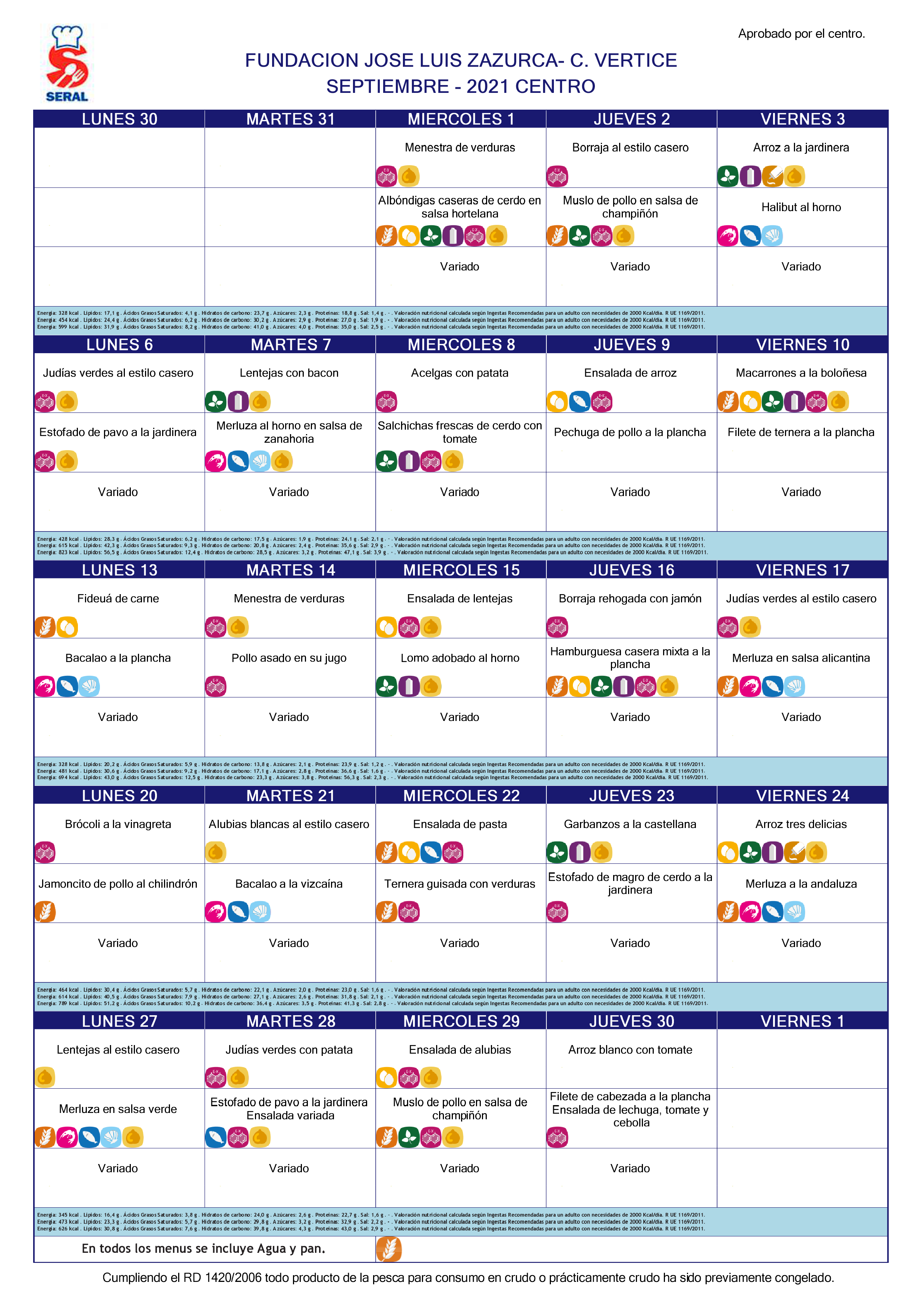 Buenos días, aquí os dejamos el menú del mes de septiembre para que podáis consultarlo Recomendaciones e información sobre el aporte nutricional de los menús e información sobre el aporte nutricional de los menús