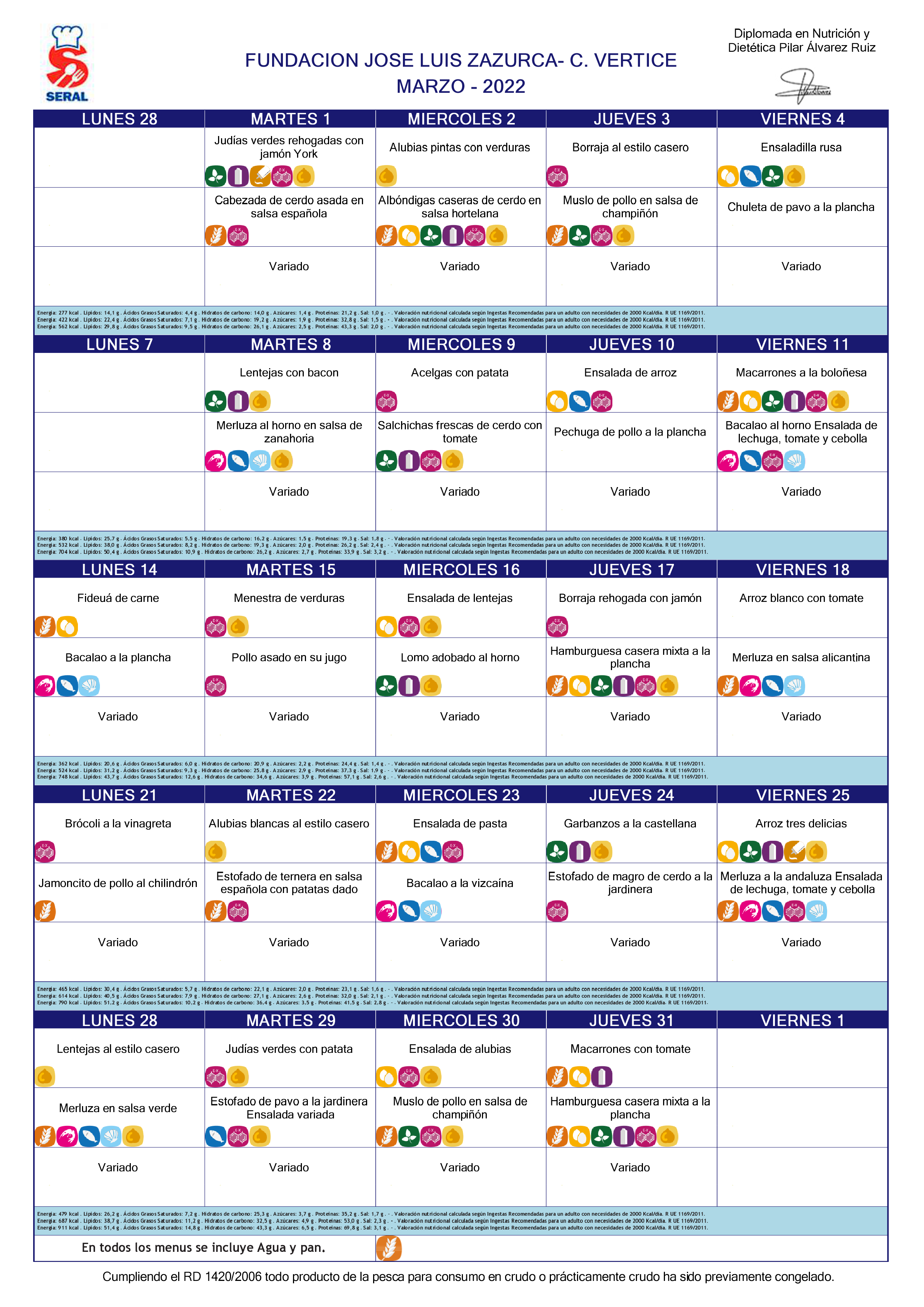 Buenas tardes, os presentamos el menú del mes de Marzo para que podáis consultarlo Recomendaciones e información sobre el aporte nutricional de los menús e información sobre el aporte nutricional de los menús