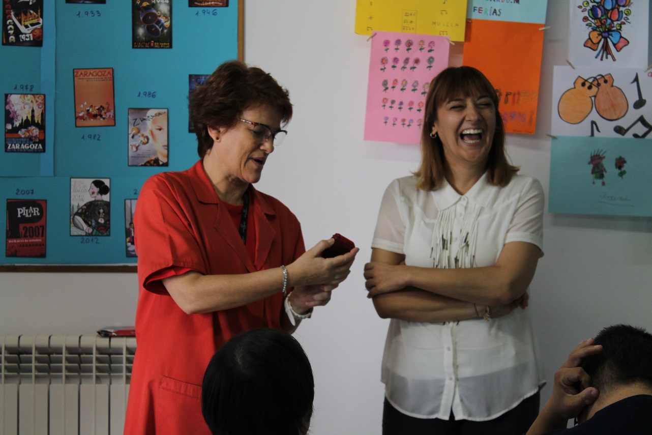 Tras la visita por los diferentes espacios que forman la Fundación José Luis Zazurca, en la que pudo conocer de primera mano el trabajo que llevan a cabo los diferentes equipos del centro ocupacional así como el equipo de artesanía, tras recibir un obsequio por su visita, los chicos decidieron poner a prueba su creatividad pidiéndole un dibujo en riguroso directo. Una prueba que superó con facilidad ante la atenta mirada de los presentes. Marcén aseguró sentirse “verdaderamente agradecida de haber tenido la oportunidad de conocer el centro y a toda esta gente tan maravillosa”.