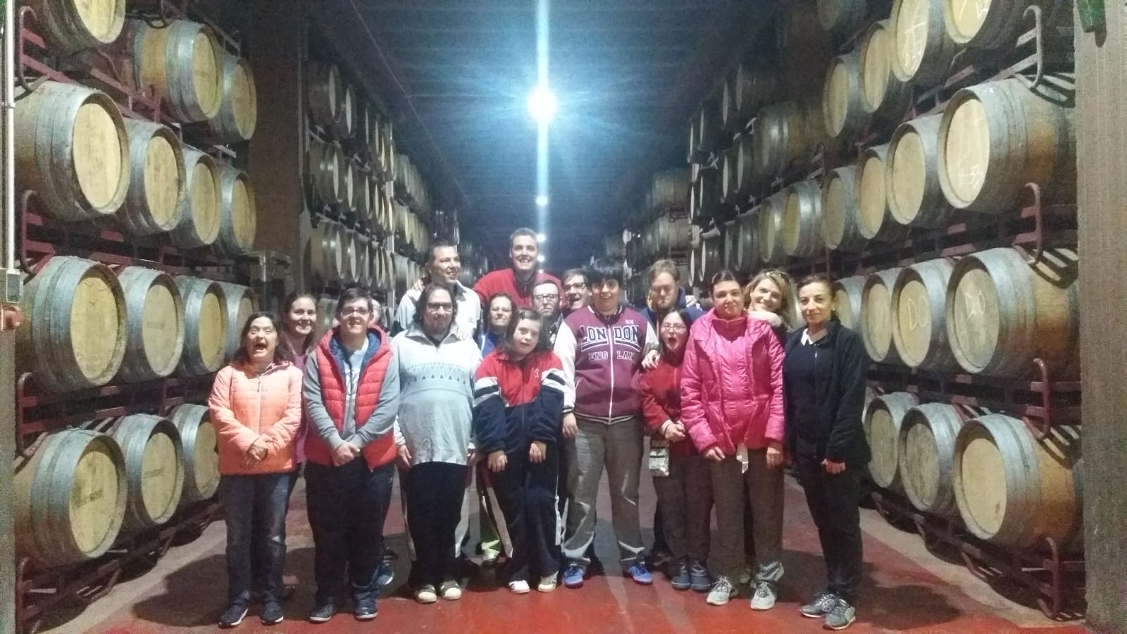Tras la celebración del 12 de octubre, en la que varios de nuestros chicos participaron, y de cuyas fotos nos hicimos eco en las redes sociales del centro, como Oscar que le hacía fotos a su hermana Myriam; Eduardo o Nachete, vestido de baturro; el pasado día 15 nos fuimos de excursión a las Bodegas San Valero de Cariñena, donde nos prepararon una completísima visita a la instalación para conocer el proceso de elaboración del vino desde la recogida del mismísimo grano hasta la preparación del embalaje final, un trabajo que realizan parte de los usuarios del centro ocupacional con papel pergamino y pegamento.