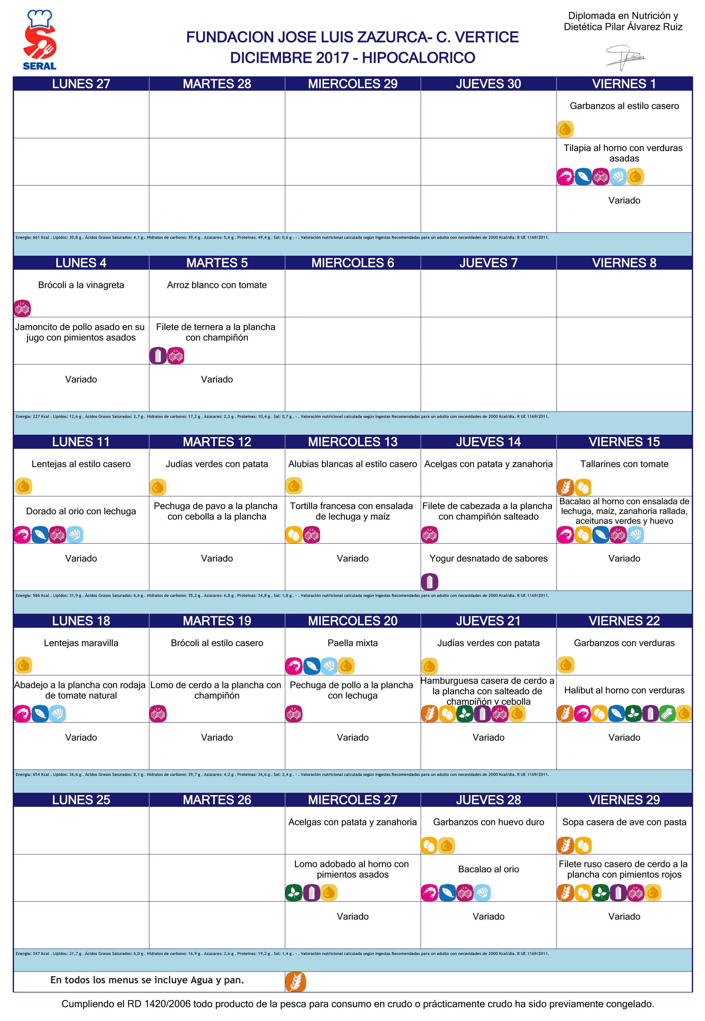 MENÚS DE DICIEMBRE Nuestros menús de Diciembre Menú Normal Menú de Régimen Recomendaciones e información sobre el aporte nutricional de los menús diciembre 4, 2017|Categories: CENTRO VéRTICE, COMEDOR, FUNDACION JOSE LUIS ZAZURCA|0 Comments ¡Comparte esta Noticia! FacebookXRedditLinkedInTumblrPinterestVkEmail Related Posts Gallery MENÚ OCTUBRE 2025 septiembre 29, 2025 | 0 Comments Gallery MENÚ DE SEPTIEMBRE 2025 septiembre 1, 2025 | 0 Comments Gallery MENÚ DE JULIO 2025 junio 26, 2025 | 0 Comments Gallery MENÚ DE JUNIO 2025 mayo 29, 2025 | 0 Comments Gallery MENU MAYO 2025 mayo 8, 2025 | 0 Comments Gallery MENÚ DE ABRIL 2025 marzo 28, 2025 | 0 Comments Leave A Comment Cancelar la respuestaComment Save my name, email, and website in this browser for the next time I comment. Current ye@r * Leave this field empty Δ