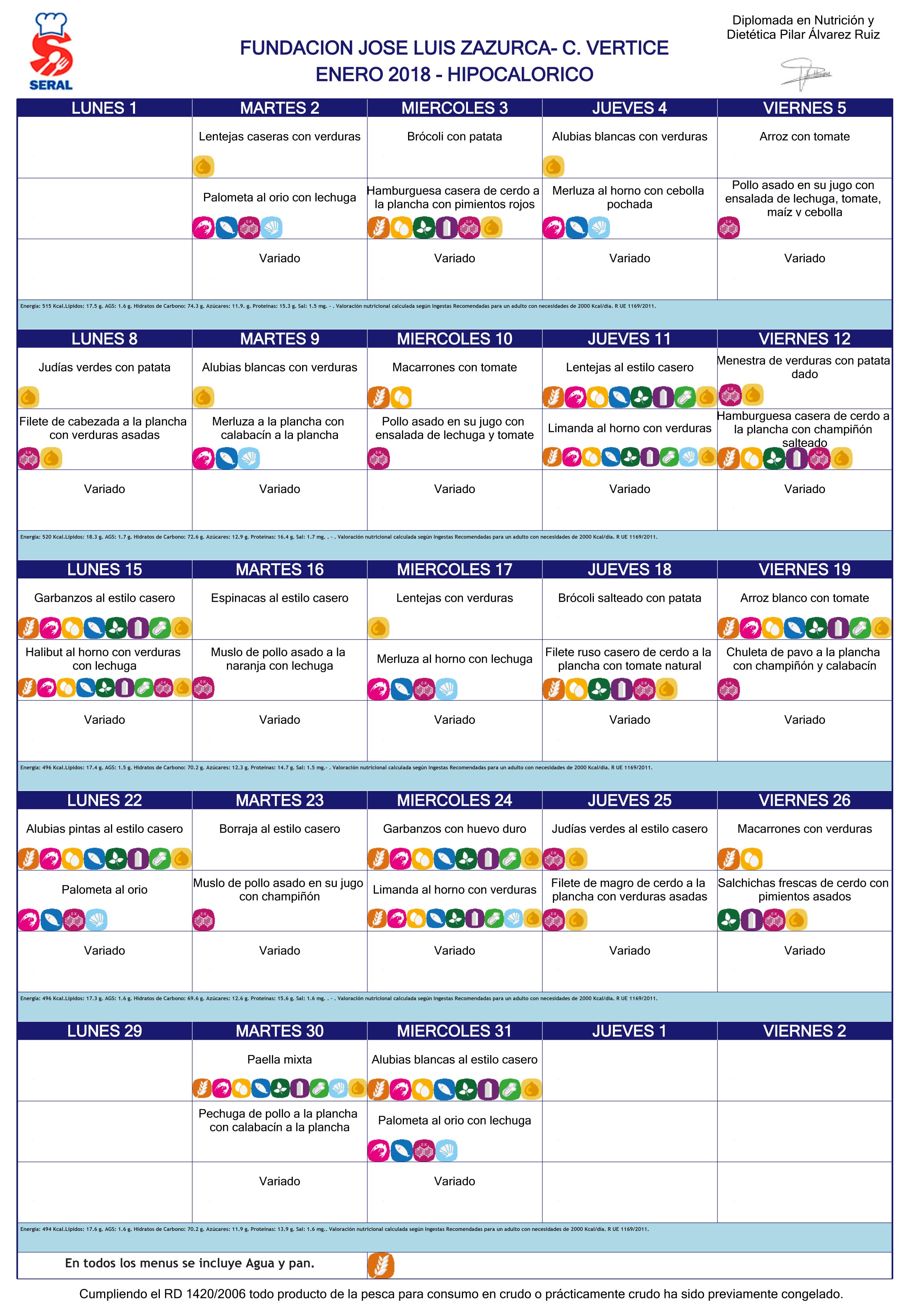 Recomendaciones e información sobre el aporte nutricional de los menús Menu2