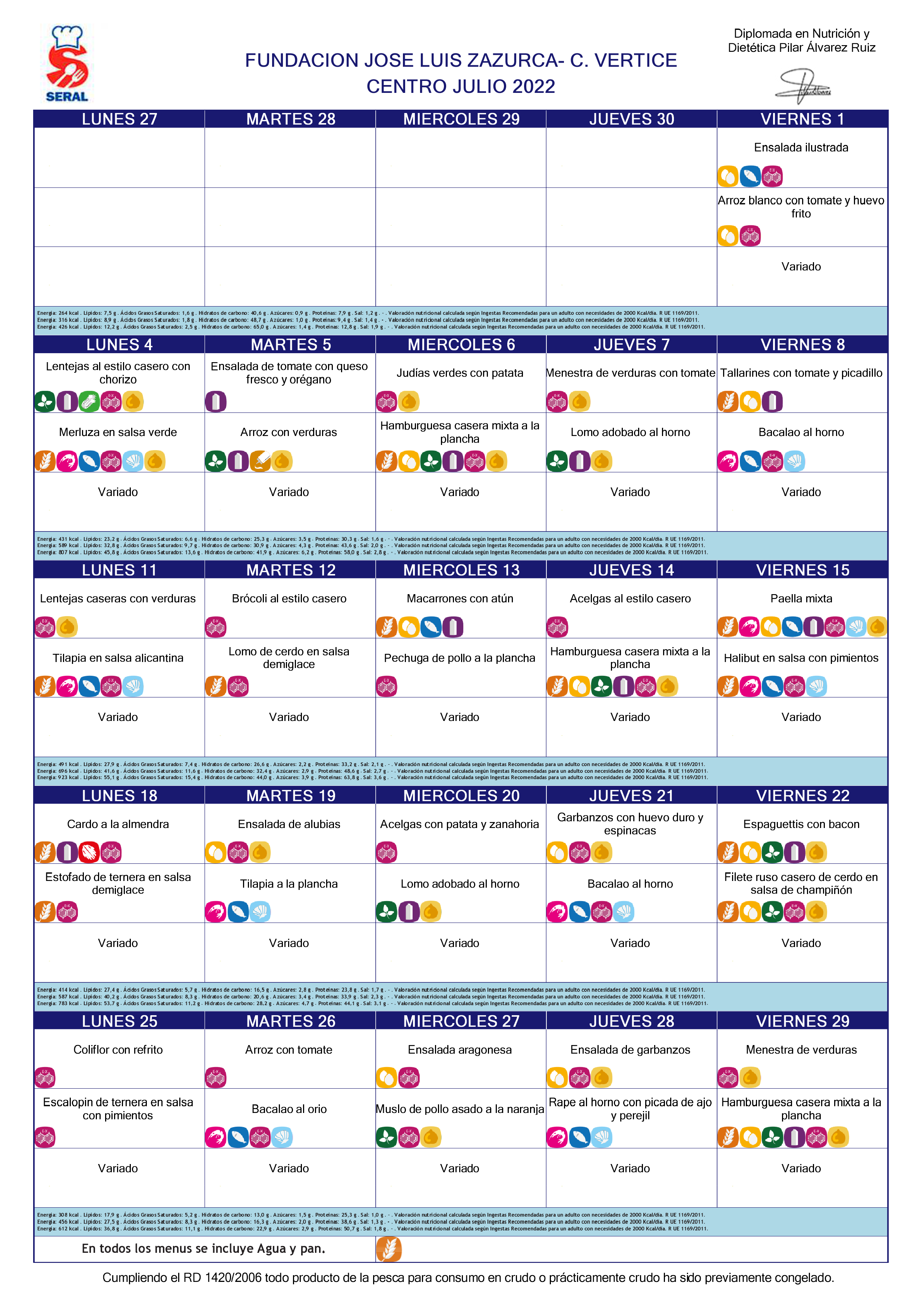 Bueno días, os dejamos los menús del mes de Julio