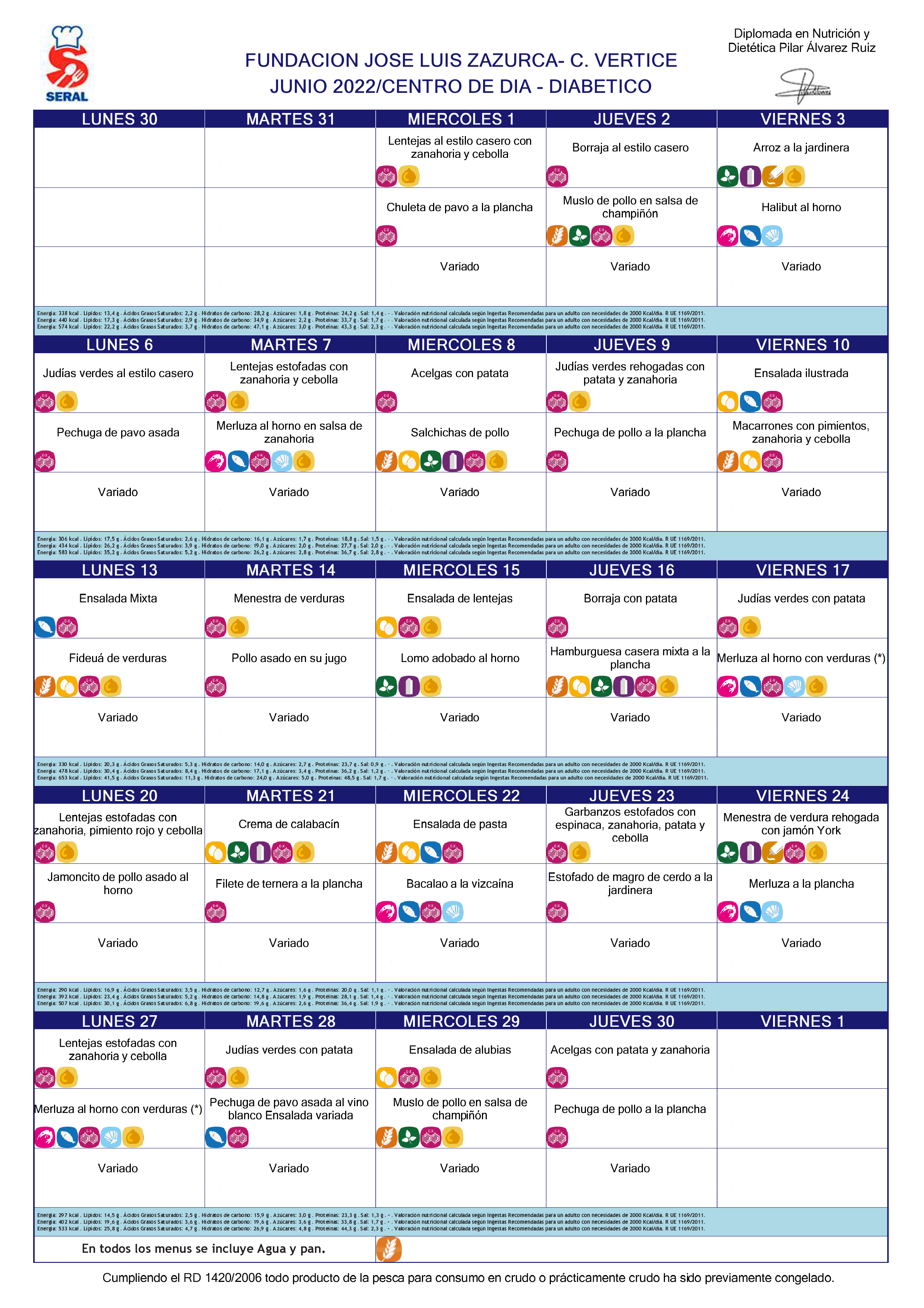 Recomendaciones e información sobre el aporte nutricional de los menús e información sobre el aporte nutricional de los menús