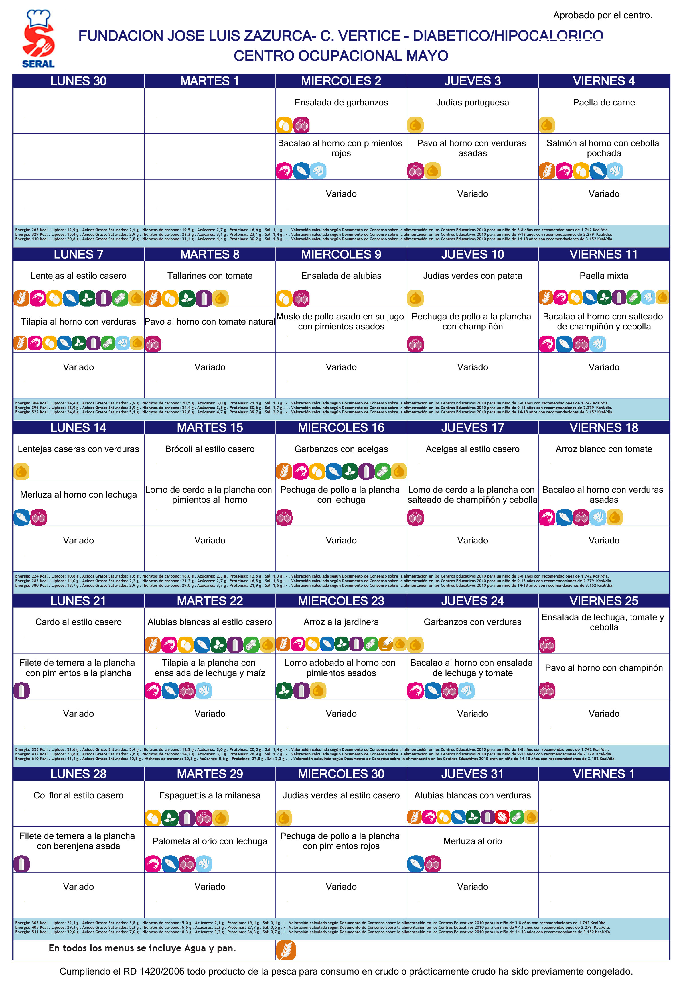 Recomendaciones e información sobre el aporte nutricional de los menús