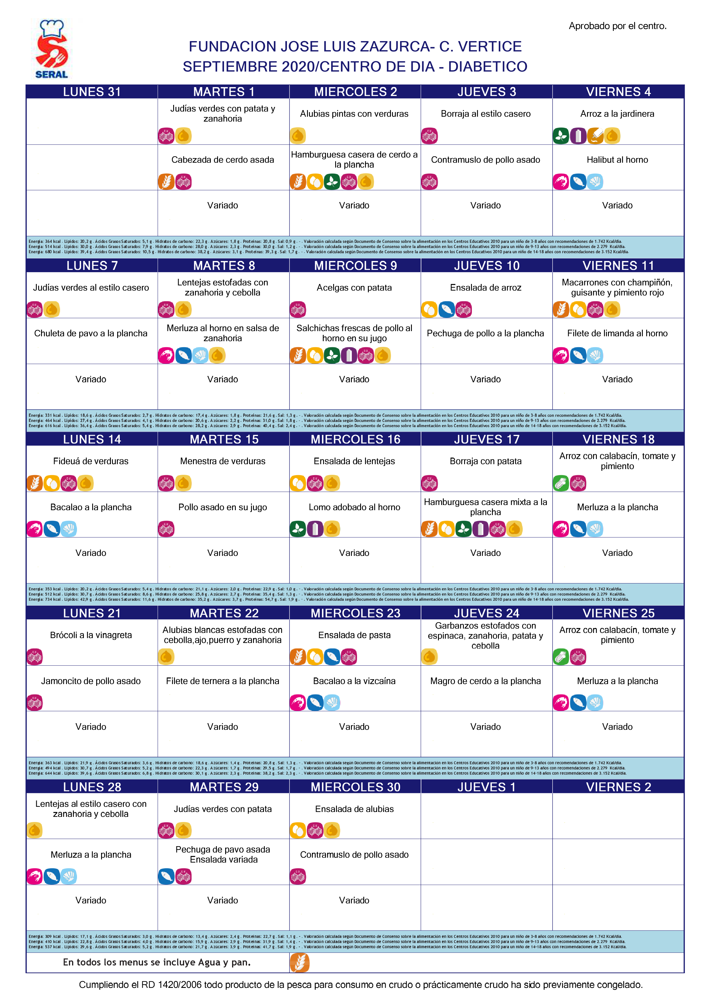 Buenos días, os dejamos los menús del mes de Septiembre