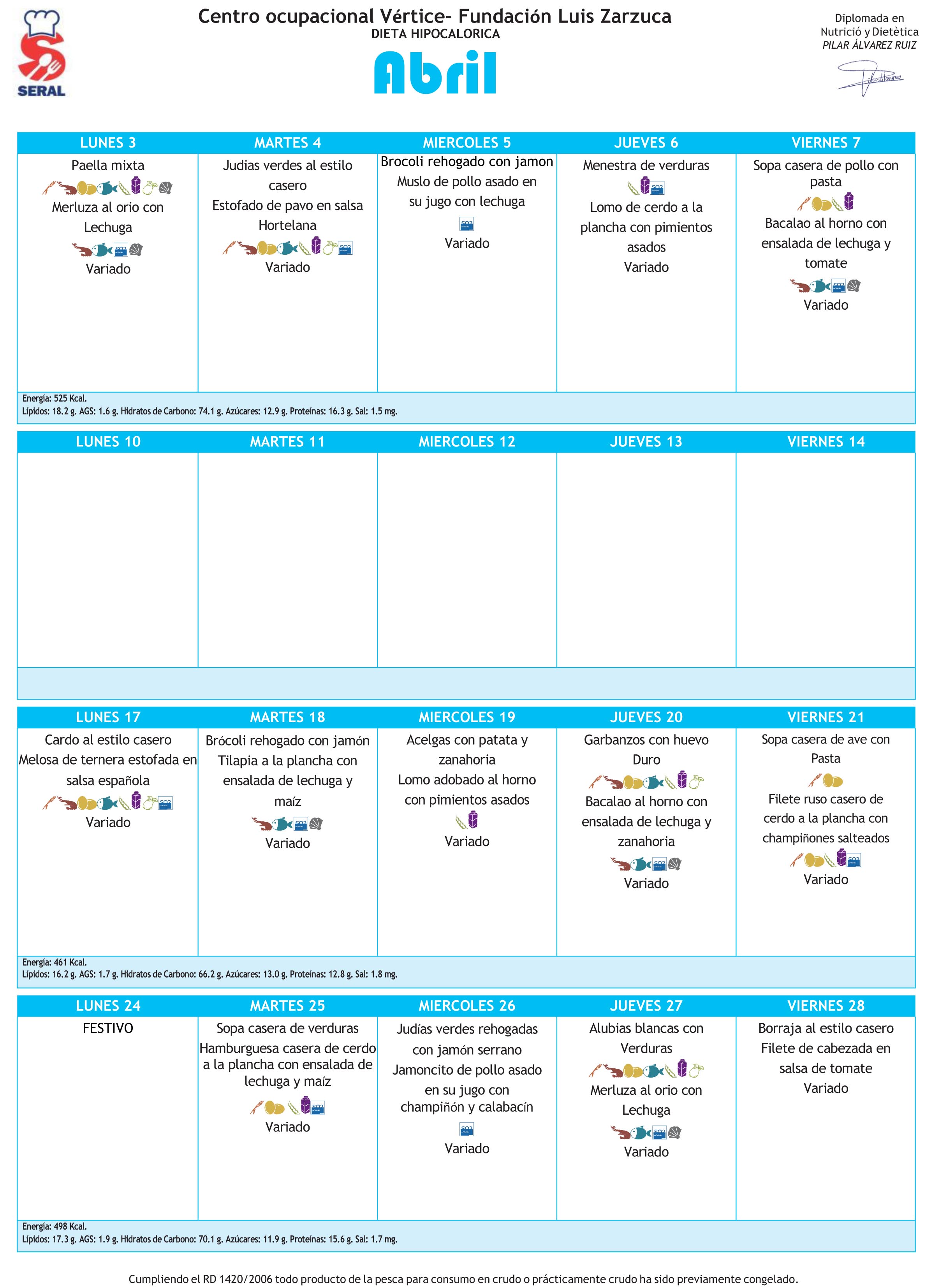Recomendaciones e información sobre el aporte nutricional de los menús