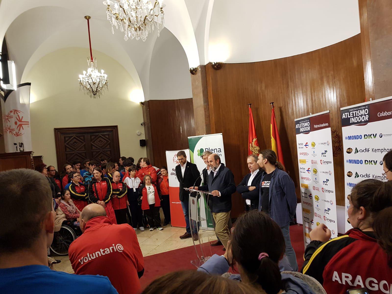 Varios usuarios de la residencia VéRTICE han disfrutado hoy del acto de recepción de la antorcha de Special Olympics y Plena Inclusión Aragón que ha tenido lugar en el Ayuntamiento de Zaragoza. A las 18.00 de esta tarde la antorcha olímpica iniciaba su recorrido desde la Pza. Santa Engracia con varios relevos de deportistas de élite de Zaragoza que ha acompañado a los atletas de Special Olympics y a los voluntarios.