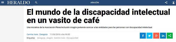 El Domingo 4 de marzo y bajo el título «EL MUNDO DE LA DISCAPACIDAD INTELECTUAL EN UN VASITO DE CAFÉ«, HERALDO DIGITAL DE ARAGÓN publicó una noticia donde se muestra la iniciativa solidaria de la empresa de vending aragonesa Eboca como fruto de la colaboración con Plena Inclusión Aragón.